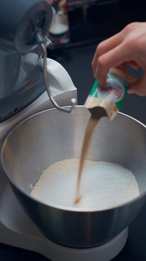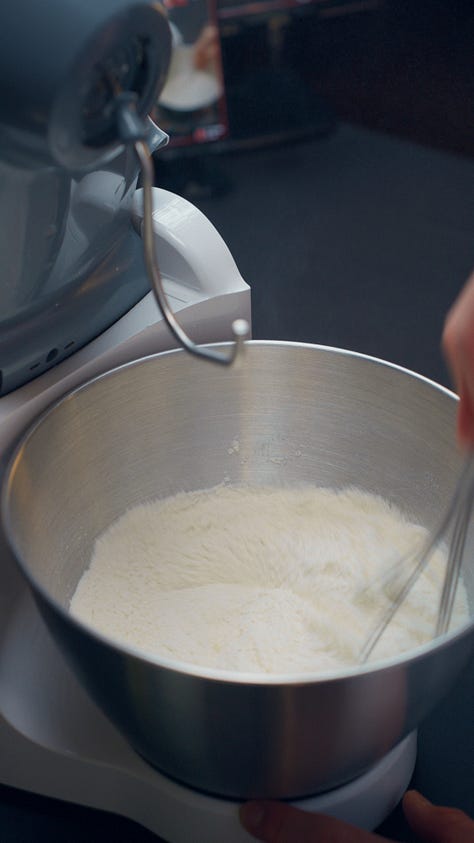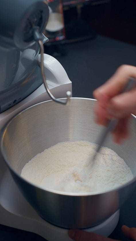 In a stand mixer bowl (Or a big bowl if you dont have a stand mixer) whisk together: