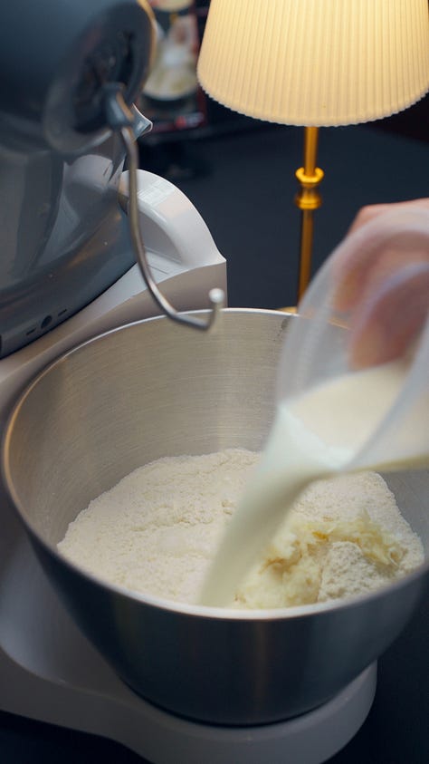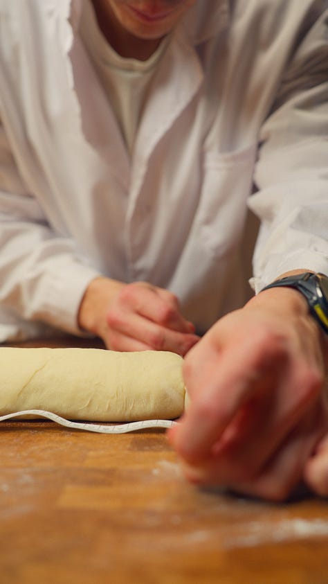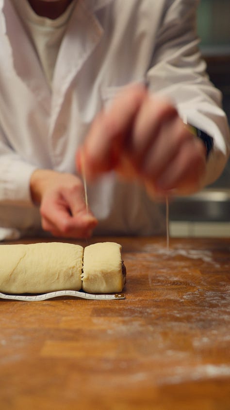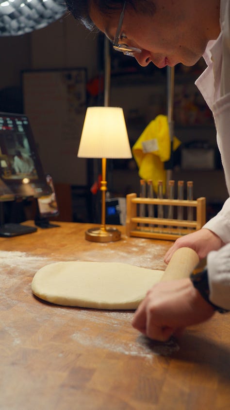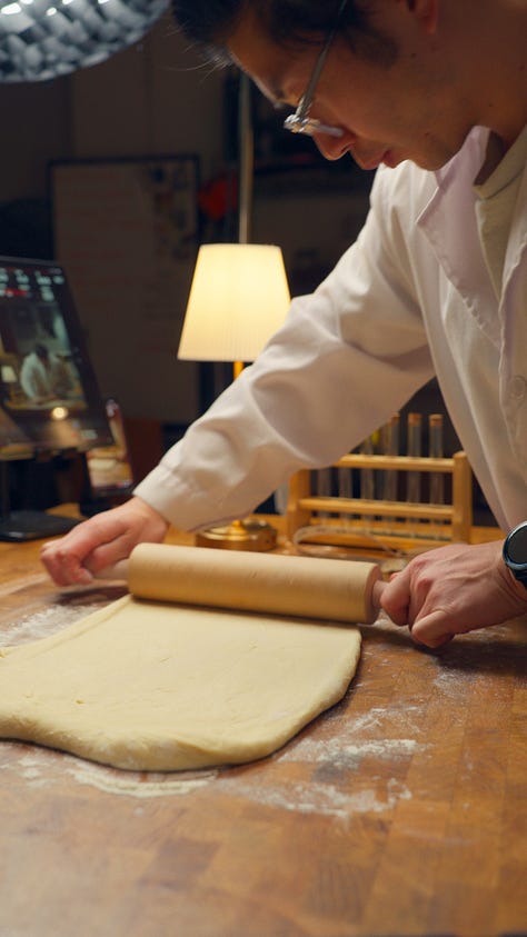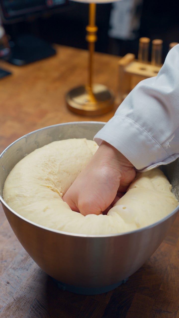 Science: This step builds gluten before the butter goes in. Why we did this without the butter is because butter coats flour proteins and can block gluten formation if added too early. Building this network first allows the dough to be stronger and gives it a better lift.